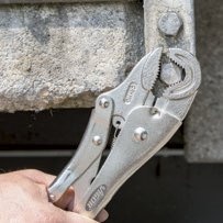 Nastavitelné samosvorné kleště s obloukově tvarovanou čelistí jsou vyrobeny z poniklované oceli.